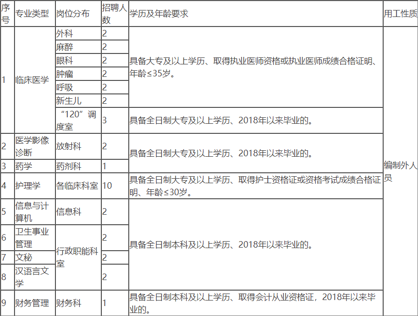 1、经考试录用的编外人员,需与医院签订聘用合同,医院将按照国家相关政策为其办理各种保险(住房公积金、养老保险、医疗保险、失业保险、工伤保险、生育保险)。