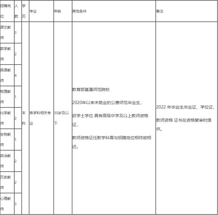 符合岗位要求的教育部直属6所师范大学(北京师范大学、华东师范大学、东北师范大学、华中师范大学、陕西师范大学、西南大学)2020年以来全日制普通招生计划未就业公费师范毕业生,年龄计算截止2021年11月30日。
