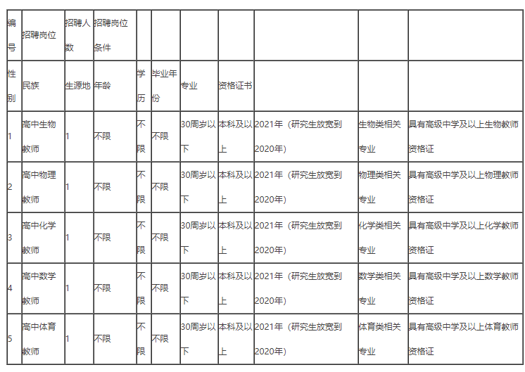 2.应聘人员须具备高级中学及以上相应学科教师资格证。