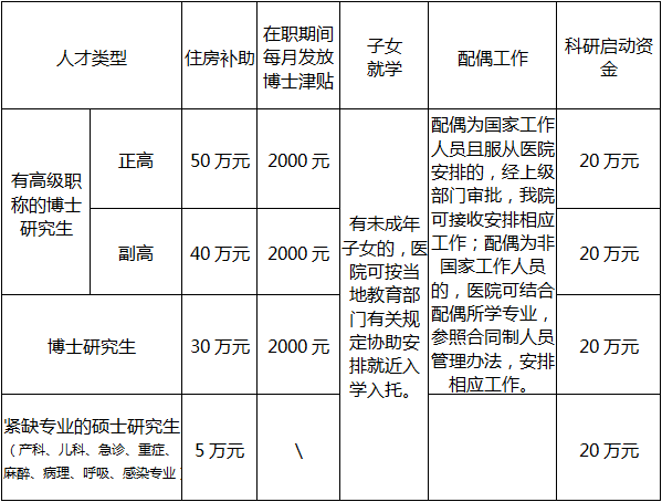 按国家有关政策管理和享受相关待遇外,并按医院有关规定享受引进高层次人才待遇,具体如下: