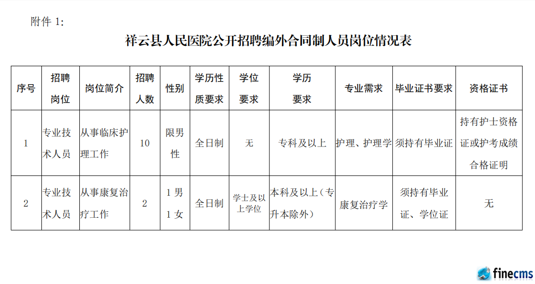 为进一步促进医院学科发展,结合工作实际,根据人力资源需求,经医院研究决定,并报县卫健局审批同意,面向社会公开招聘编外合同制人员,现将有关事项公告如下: