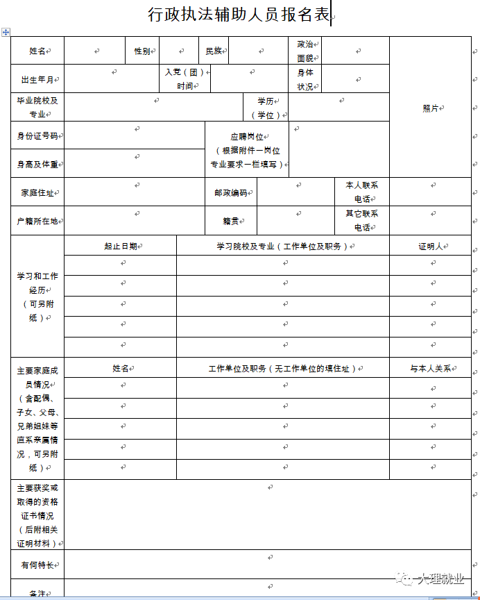 附件:1. 大理市卫生局卫生监督所公开招聘行政执法辅助人员报名表