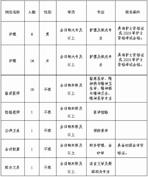 3.报名邮箱:报考“护理岗位”的人员请将相关材料发送至dlzeyzp@126.com;报考“临床医师”“检验技师”“精神卫生防控”“会计核算”“院办文员”等岗位人员请将相关材料发送至dlzeyrs@126.com。