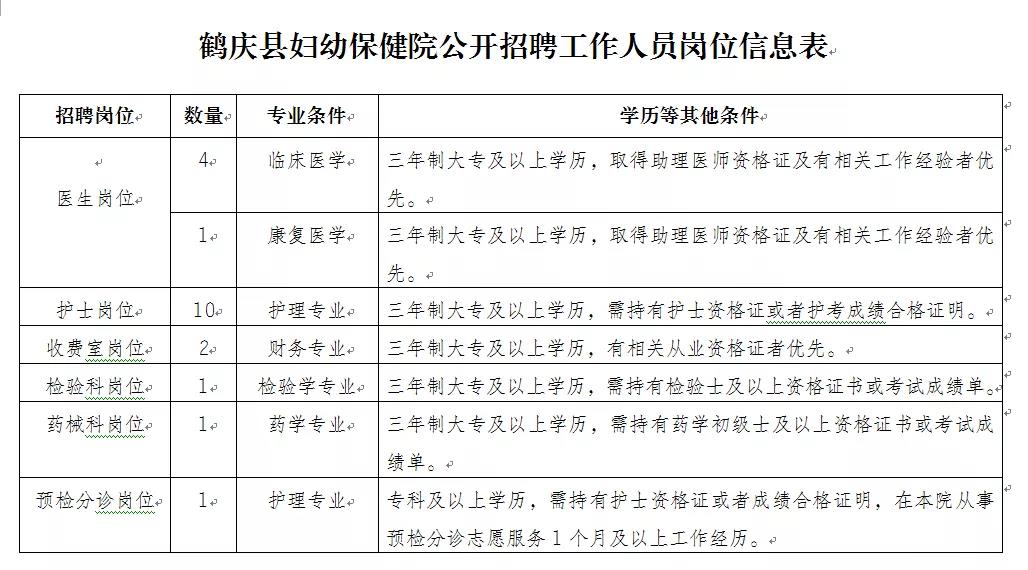 附件:鹤庆县妇幼保健院公开招聘工作人员岗位信息表