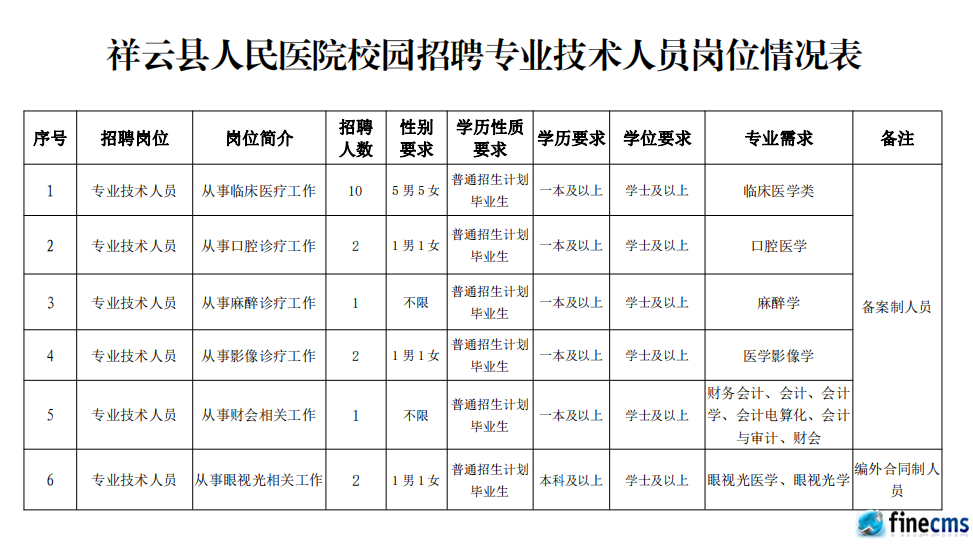 为进一步加强医院人才队伍建设,满足医院学科发展的人才需求,提升医院医疗服务能力,经医院研究决定,并报请上级主管部门审批同意,采取校园招聘的方式招聘专业技术人员,现将招聘有关事宜公告如下: