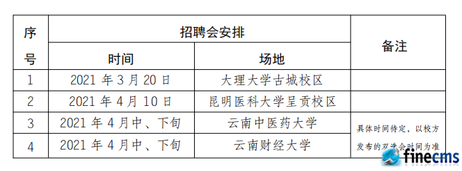 结合各高校校园招聘专场的时间节点,有序安排。其中,人员招聘满员后则不再参与后续场次的校园招聘(每场次结束会在“祥云县人民医院”微信公众号和官网及时发布招聘进度),具体时间安排如下表所示: