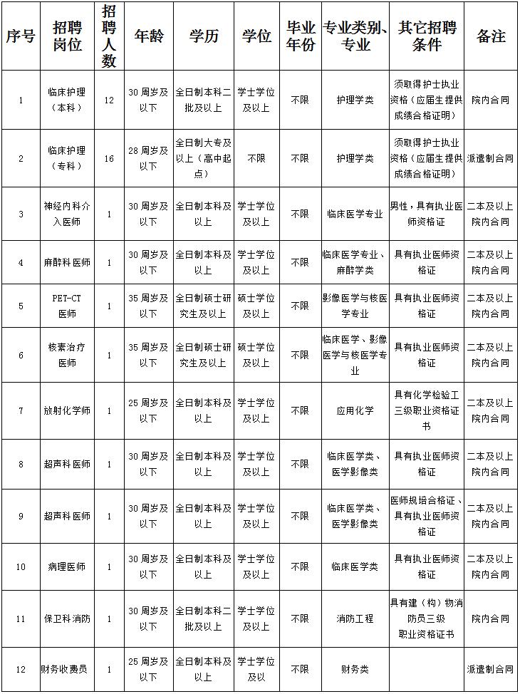 为更好地“践行总理嘱托,筑梦健康中国”,将医院建设成为“立足红河、面向云南、辐射东南亚”的现代化肿瘤医院,经《云南省发展和改革委员会关于云南省滇南区域医疗中心建设项目可行性研究报告的批复》云发改社会【2019】1098号文件确认,由我院为云南滇南区域医学中心肿瘤中心提供学科人力资源保障。按照云南滇南区域医学中心肿瘤中心建设的蓝图安排,我院现面向社会招聘优秀医疗卫生专业高校毕业生。 一、医院概况 红河州第三人民医院、红河州肿瘤医院(原云锡职工医院),现为三级甲等肿瘤专科医院,是中国医学科学院肿瘤医院肿瘤研究所肺癌防治合作中心,云南省肿瘤临床医学中心红河州第三人民医院分中心,云南肿瘤综合治疗中心红河(个旧)基地,红河州肿瘤放射治疗中心,红河州肿瘤质量控制中心,红河州肿瘤影像诊断中心,红河州职业病治疗中心,红河州癌症中心,红河州红十字医院。系云南中医药大学非直属附属医院,云南省肿瘤专科联盟医院,青岛大学附属医院肿瘤专科联盟医院,红河州肿瘤专科联盟医院主体单位,云南省抗癌协会常务理事单位,中国-东盟国家医院合作联盟首批成员单位,云南省肿瘤医院互联网医院成员单位。同时,是大理大学、楚雄医药高等专科学校的教学医院;昆明医科大学海源学院、红河卫生职业学院实习医院;云南省助理医师规范化培训基地。目前,我院“云南滇南区域医学中心肿瘤中心”为一院两址建设发展。 二、招聘岗位及方式 (一)招聘岗位及要求详见《红河州第三人民医院 红河州肿瘤医院 红河州红十字医院公开招聘编外人员岗位信息表(第五期)》(附件一),硕士研究生优先,本次报名均采取现场报名方式。 (二)报名时间地点安排: 报名时间:2020年12月08日—2020年12月15日(周末休息) 报名地点:红河州第三人民医院人事科 (三)报名所需材料: 符合招聘条件的人员填写《红河州第三人民医院(红河州肿瘤医院)自主招聘报名表》(附件2)一份,持本人身份证复印件、毕业证、学位证、学信网学历(学籍)证明、照片一张、所报考岗位条件要求的相关证书复印件一式一份(原件备查)。 (四)报名资格审核:由工作人员严格按照招聘公告和岗位条件对报名考生进行资格审查(资格审查贯穿招聘工作全程)。考生对所提交的材料和填写信息的真实性负责,若存在弄虚作假行为,一经查实,取消聘用资格,造成的后果由考生本人承担。 三、联系方式 1、报名咨询电话:人事科:0873-2129177、2129227 联系人:张老师、王老师 2、通讯地址:云南省红河州个旧市金湖东路229号 红河州第三人民医院 2020年12月07日 附件1:《红河州第三人民医院红河州肿瘤医院红河州红十字医院公开招聘编外人员岗位信息表(第五期)》 附件2 云南省红河州第三人民医院合同制人员招聘报名表.doc