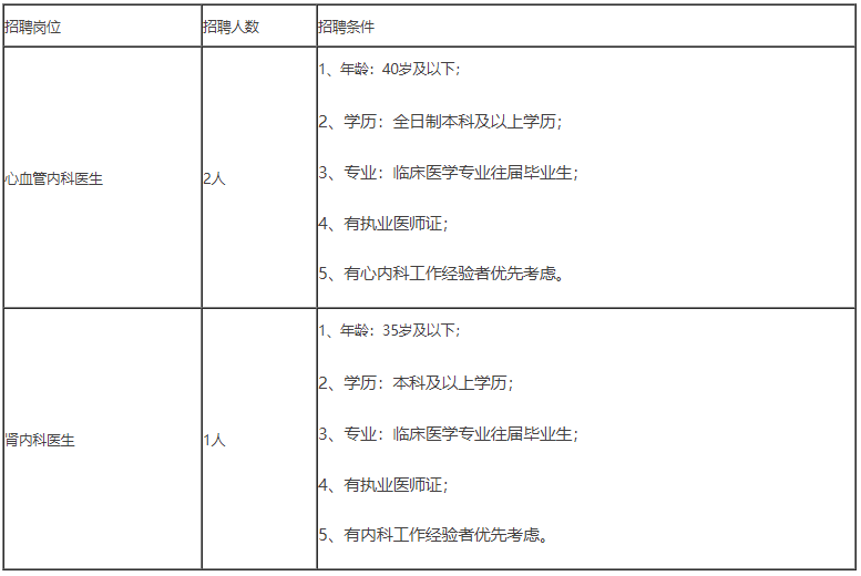 根据医院业务发展需求,现需招聘临床医生3人,具体招聘条件如下: