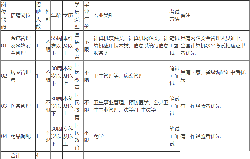 本次招聘合同制人员4人,具体岗位见《红河州第二人民医院2020年自主招聘合同制工作人员岗位信息表(第三批)》