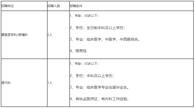 根据医院业务发展需求,现需招聘临床医生3人,具体招聘条件如下: