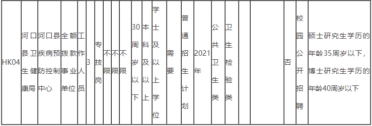 2.河口县疾病预防控制中心岗位。