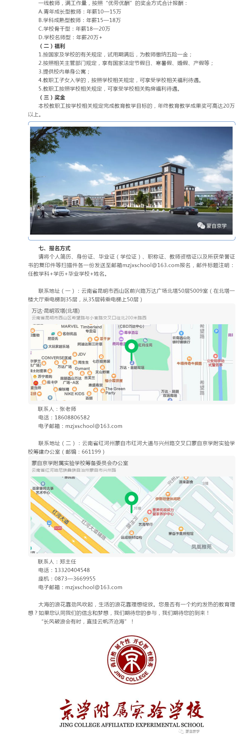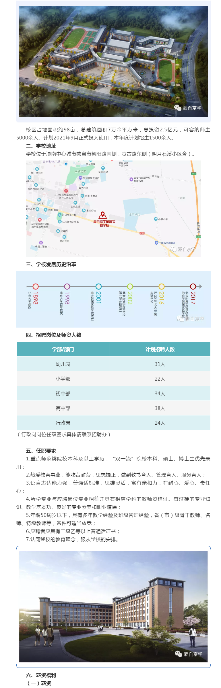 云南蒙自京学附属实验学校教师2021年招聘简章