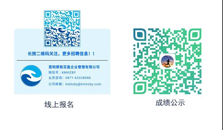 本次招聘采用微信线上报名方式,报考人员须先关注“昆明厚致百盈企业管理有限公司”微信公众号,在报名时间内进行报名。