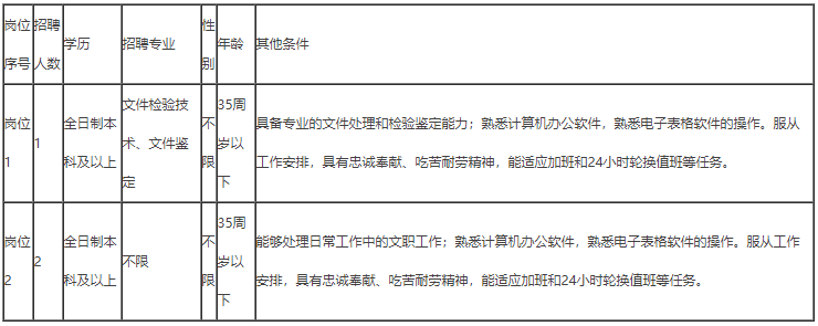 (一)招聘岗位:云南省公安厅经侦总队辅助工作人员,协助民警从事警务辅助工作和其他勤务活动。辅助工作人员不具有人民警察和公务员身份,不纳入编制管理,不行使人民警察职权。