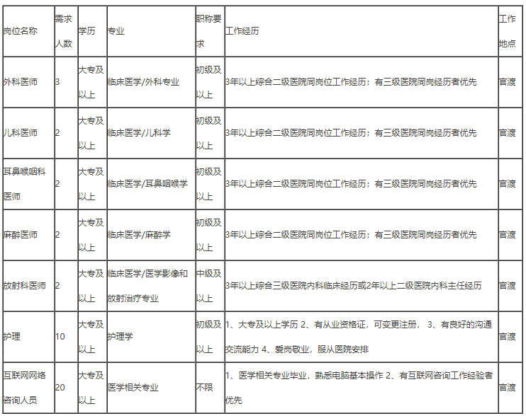 招聘地址:昆明市官渡区环城南路709号,医院行政楼5楼人事部