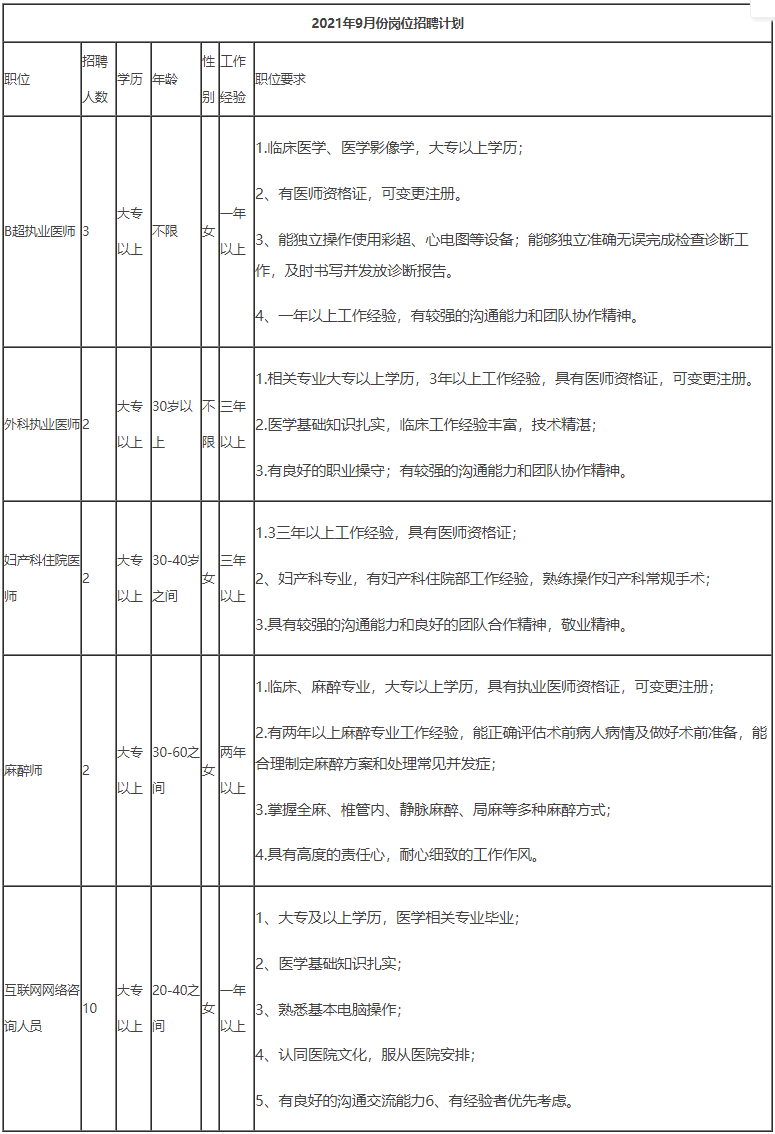 招聘地址:昆明市官渡区环城南路709号,医院行政楼5楼人事部