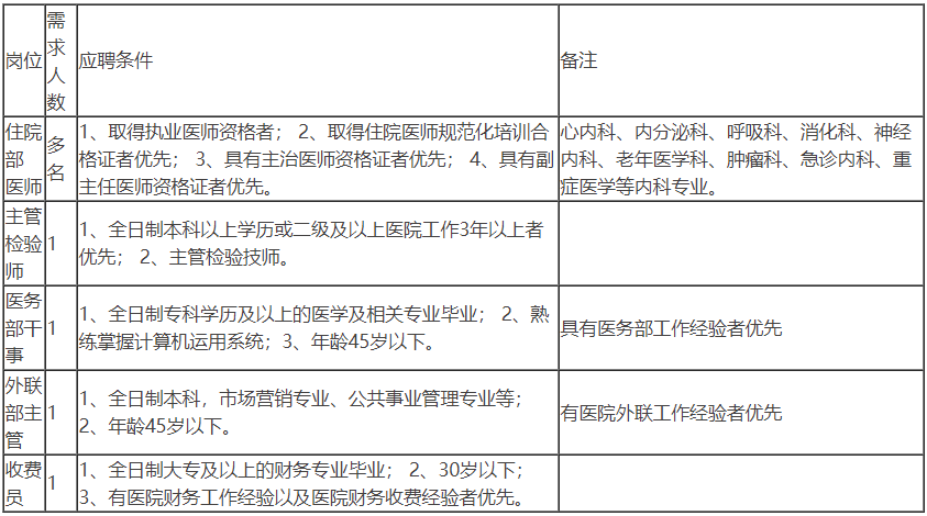 招聘岗位名称、人数、资格条件: