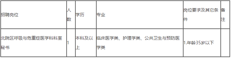 昆明市第一人民医院因业务发展需要,现面向社会公开招聘北院区呼吸与危重症医学科科室秘书,现将有关招聘事宜公告如下: