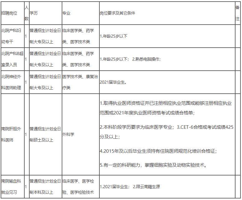 昆明市第一人民医院因业务发展需要,现面向社会公开招聘工作人员,现将有关招聘事宜公告如下: