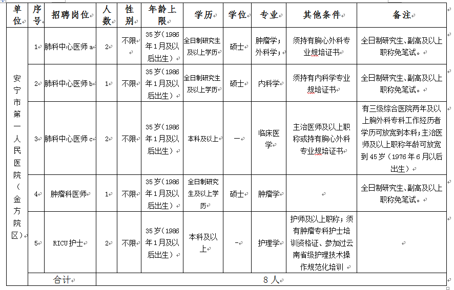 安宁市医疗共同体由安宁市第一人民医院(昆明市第四人民医院、三级甲等综合医院)、安宁市中医医院(二级甲等综合医院)、市属公立社区卫生服务中心、卫生院、公立社区卫生服务站、村卫生室等政府举办的医疗卫生机构组成。现因工作业务需要,面向社会招聘非事业编工作人员。