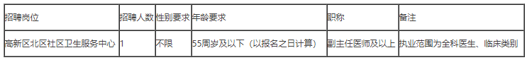 岗位职责:负责高新区北区社区卫生服务中心工作