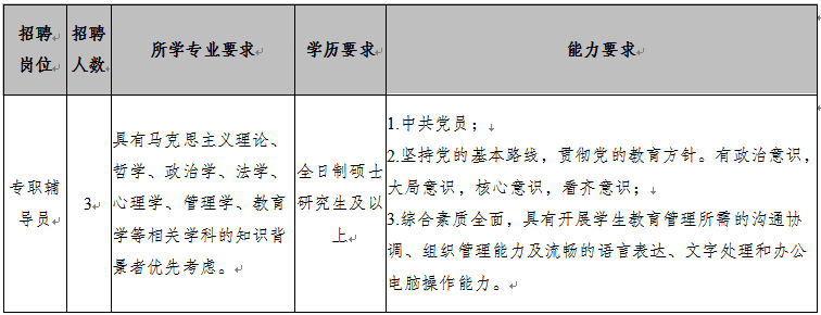 为适应学校发展的需要,需面向社会诚聘3名专职辅导员,现将有关事项公告如下: