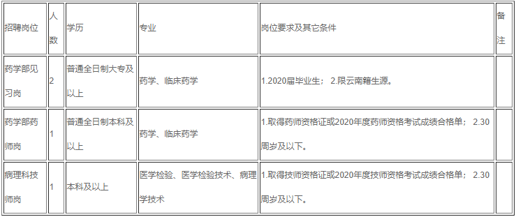 昆明市第一人民医院因业务发展需要,现面向社会公开招聘药学部见习岗、药学部药师岗、病理科技师岗,现将有关招聘事宜公告如下: