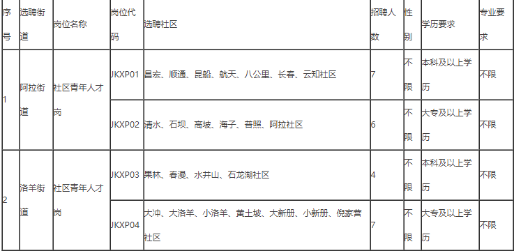 昆明经济技术开发区2021年公开选聘社区青年人才岗位计划表