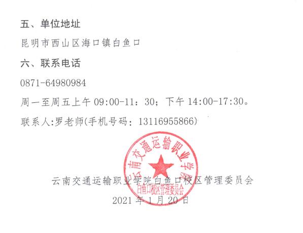 云南交通运输职业学院白鱼口校区2021年管理委员会编制招聘简章