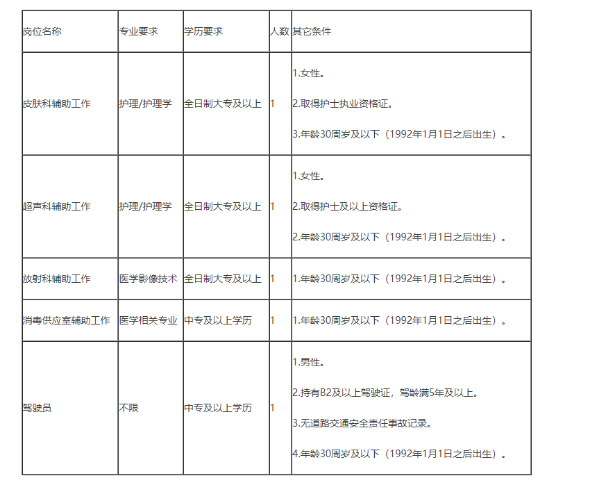 1、皮肤科辅助工作岗位:考试包括护理操作和面试,考试综合成绩为100分,综合成绩=护理操作成绩×50% 面试成绩×50%。