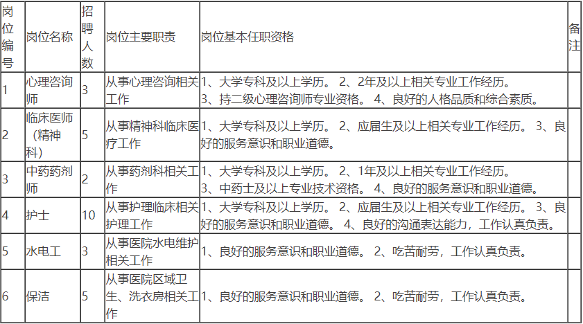 禄劝鸿康精神病医院招聘岗位需求表