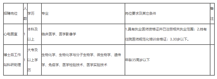 昆明市第一人民医院因业务发展需要,现面向社会公开招聘合同制心电图室医师岗、博士后工作站科研助理岗,现将有关招聘事宜公告如下: