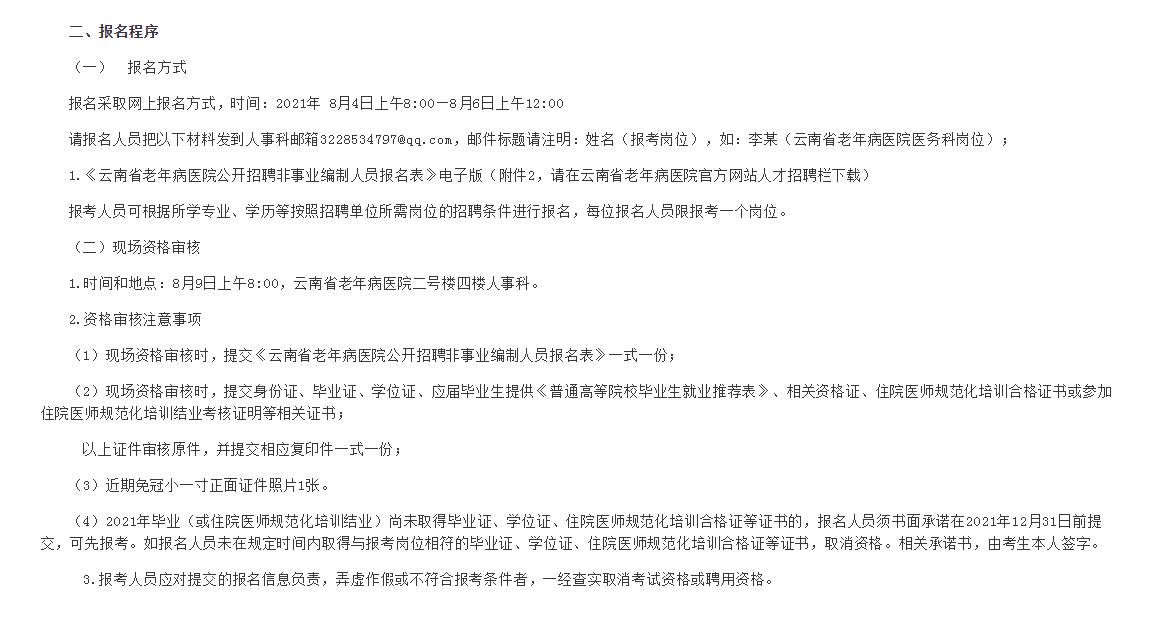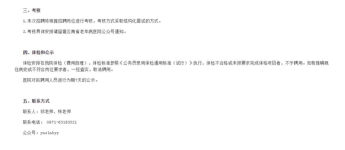 云南省老年病医院2021年招聘第一批非事业编制人员启事