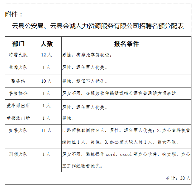 附件:《云县公安局、云县金诚人力资源服务有限公司招聘名额分配表》