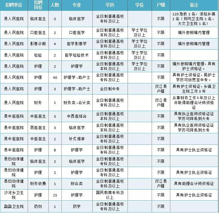 (一)县人民医院招聘编制外专技人员57名,其中9名参照编制内管理,享受编制内同级人员同等待遇。