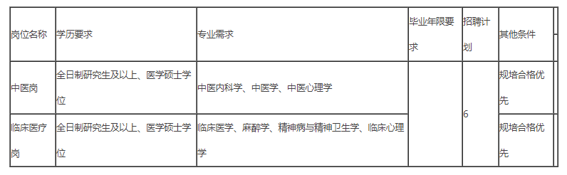 引进岗位6名,为中医、临床医疗岗位。