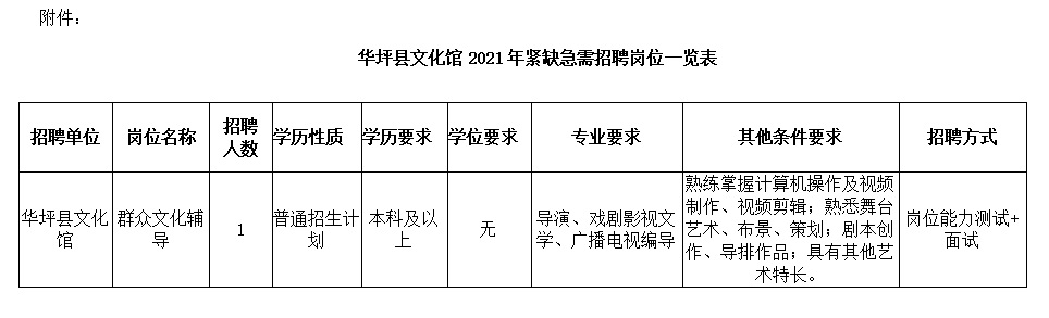 附件:华坪县文化馆2021年紧缺急需招聘岗位一览表