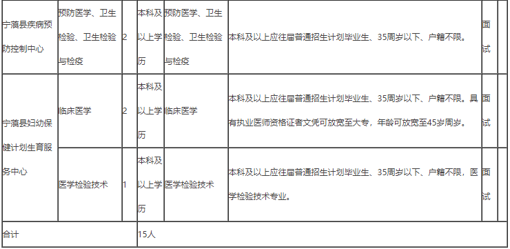 本科及以上应往届普通招生计划毕业生、35周岁以下、户籍不限,紧缺急需专业临床医学2名(具有执业医师资格证者文凭可放宽至大专,年龄可放宽至45岁周岁)。