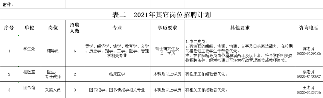 注:如因属地疫情防控,可通过网络视频进行面试、试讲考核,拟录用人员的心理测试、笔试待到校后补测。