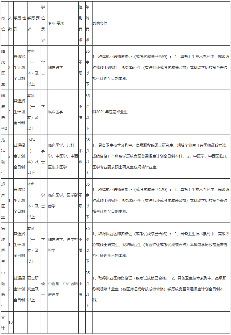 本次主要招聘对象为省内外高校医学相关专业应往届毕业生,不受理在编行政事业单位工作人员报名,具体要求如下: