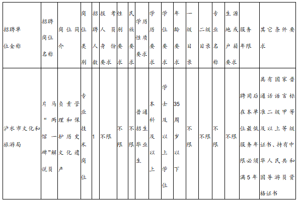 (http://www.nujiang.gov.cn/rsj/)、“摆时之乡·中国泸水”网(http://www.ynls.org.cn/)下载并如实填写附件《2021年泸水市文化和旅游局特招特聘讲解员报名表》。