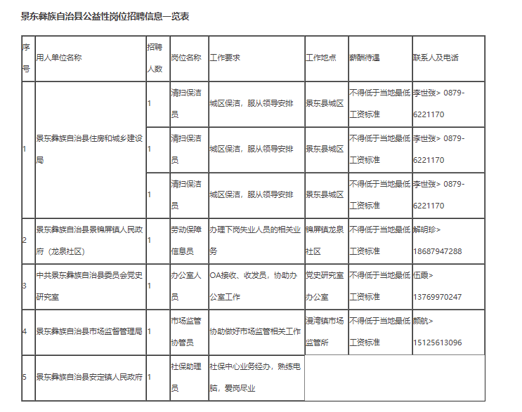 附件:景东彝族自治县公益性岗位招聘信息一览表