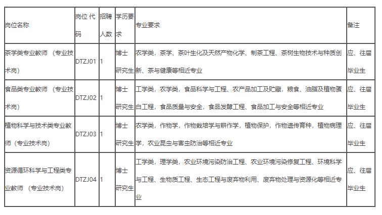 2.滇西应用技术大学普洱茶学院2022年紧缺急需人才招聘专任教师岗位计划表