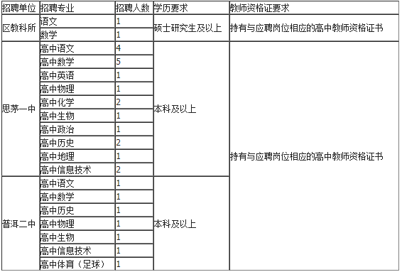 (六)公示。根据体检、复核和考察结果,确定拟聘用人员,拟聘用人员名单在思茅网及思茅区教育体育局微信公众号进行公示,公示期为7个工作日。