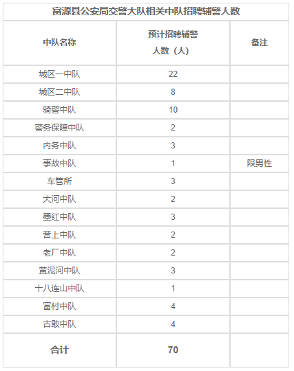 因工作需要,富源县公安局交警大队现面向社会公开招聘70名警务辅助人员。