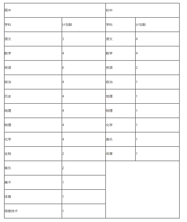 三、招聘计划(根据学校工作需要适时调整招聘学科及学科岗位数