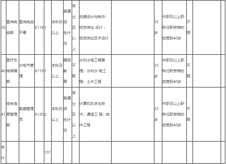 5.年龄在18周岁以上(2003年4月2日及以前出生)、35周岁以下(1986年4月2日及以后出生),中职及以上专业技术任职资格的,年龄可放宽到40周岁(1981年4月2日及以后出生)。