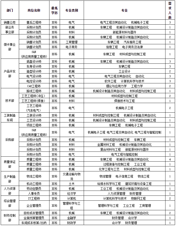 招聘岗位及要求: