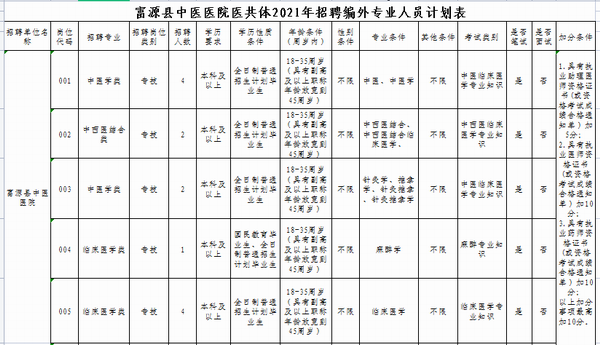 附件:《富源县中医医院医共体2021年招聘编外专业技术人员计划表》