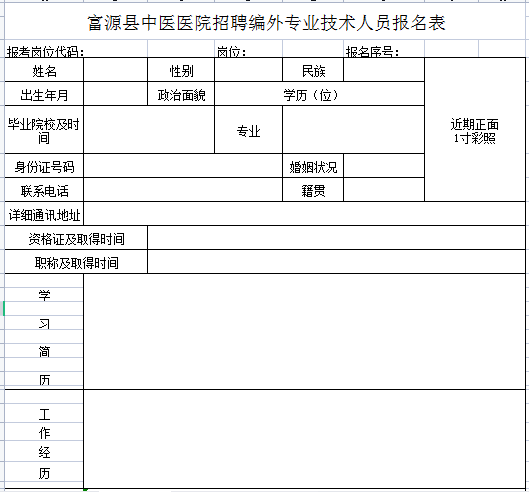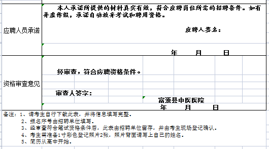 1.报名表信息填写。报名表可在富源县中医医院官方网http://www.fyxzyyy.cn/自行下载,请各位考生按照填表要求认真填写,字迹清晰,涂改无效。报名时请考生将报名表一并上交报名点。